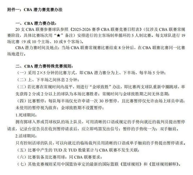 「一周刺猬话题」传说中的“第五节”比赛要来了!距离25-26赛季CBA开赛还有不到一个月,关于新赛季的一个重大改变也浮出水面——CBA潜力赛。此前已经提到过新赛季大概率将采取每节10分钟来进行,旨在接轨FIBA。无论是对于球员球队的影响,还是说赞助商等方面,都可以说是牵一发而动全身。于是,官方想到了“打40分钟送10分钟” 。