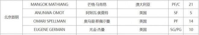 如今北京男篮完成第4外援马帝昂的注册,球队正式组建四外援阵容,其余3人是斯佩尔曼、杰曼与奥莫特。马帝昂上赛季是效力于宁波男篮的外援,他当时场均能够得到12分8篮板1.2助攻0.9抢断1.1盖帽。