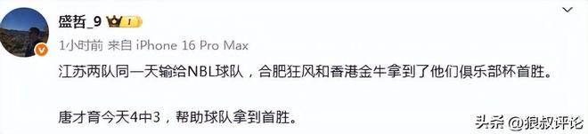 青岛跟队记者杜金城发文点评:“今天进行的CBA俱乐部杯赛,居然有两场比赛都是NBL队伍爆冷战胜了CBA的队伍。在球迷惯常印象中,CBA的球员水平更高、俱乐部投入更大。但今年的杯赛第一次让NBL队伍参与其中,这也让一些CBA球队“现了原形”。