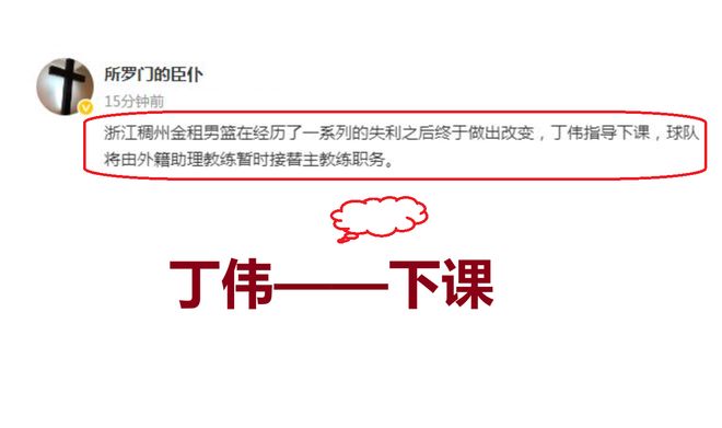 快,快,真的很快!CBA第三位下课的主教练来了,没错,他就是浙江队的教练丁伟!人称CBA江湖上很会总结教练员!CBA知名的解说员,接下来的一段时间里,丁伟又可以开心说球了!CBA常规赛才打到第五轮比赛,让人没有想到的是,就有三位CBA主教练下课。在CBA常规赛开赛前二天,同曦队宣布了更换主教练,贝西洛维奇正式下课,助理教练王世龙成为同曦队新一任主教练。对于比赛马上开打,却更换主教练,同曦队如此操作在CBA也是十分罕见!根据一些网友透露,贝西洛维奇之所以会下课,最为主要的原因就是对球队更衣室失去了控制,在无奈之下,同曦队选择了留住球员,让主教练下课。如此一来,贝西洛维奇就成为CBA新赛季,第一位下课的主教练。第二位下课的主教练是深圳队的迈克尔·凯利,CBA常规赛第四轮比赛打完之后,深圳队就做出了一个重要的决定,没错,那就是让洋教练迈克尔·凯利下课,接替他的是深圳队助理教练郑永刚,没错,又是郑永刚。至今,郑永刚在深圳队主教练位置上,已经做到了四上四下,真的无愧是深圳队主教练位置上的“常青树”!至于,迈克尔·凯利为何会下课,深圳队也是进行了解答,那就是:优化球队战术布局,让深圳队更加适应新的CBA竞赛节奏!对于深圳队这个理由,也是让人哭笑不得,如果,郑永刚有能力改变深圳队的存在问题,他还要不断上上下下?显然,深圳队更换教练有点“脱裤子放屁”,简直就是“多此一举”。第三位下课的主教练是浙江队的丁伟,作为CBA的知名教练员,丁伟可以说是一个非常正派的教练,不管成绩好不好,丁伟的理论可是没有输过任何人。特别是他在做CBA解说的时候,将球队输赢分析得头头是道,让人十分佩服。正是因为理论知识十分深厚,丁伟下课之后,总是能够再一次上岗。然而,丁伟每一次上岗时间都是很短,因为,他带队成绩实在让人不敢恭维!不管是带山西队、新疆队、山东队、北控队,还是现在的浙江队,只要丁伟一带,球队不是输球,就是在输球的路上!至今,浙江队打了5场比赛,一共是输了4场,让人感到不可思议。根据篮球媒体人“所罗门的臣仆”透露,浙江队经过了一系列的输球之后,终于是做出了一个决定,那就是丁伟下课。接下来,球队将会由外籍助理教练担任球队主教练之职。由此一来,丁伟就成为了CBA新赛季第三个下课的主教练。实话实说:丁伟下课,笔者也没有什么好说的!在此,只能祝愿丁伟下一次上任时间来得快一些。加油!