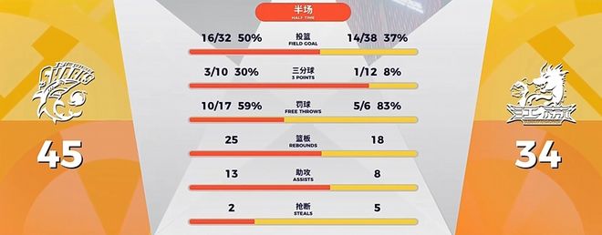 多点开花 对方难以针对性防守半场战罢,上海男篮45比34领先,江苏队半场投篮命中率不足4成,3分球更是12投1中,整体手感糟糕。
