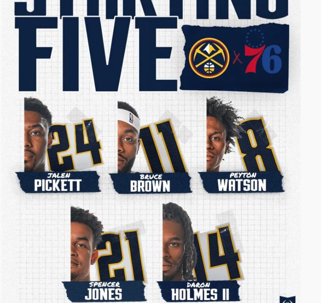 首发阵容方面,掘金队这边,除了约基奇、布劳恩等5大主力受伤缺战,穆雷也选择轮休,总计8人缺席,教练排出的三阵首发五人组为:皮克特、布鲁斯-布朗、沃特森、斯宾塞-琼斯、霍姆斯;76人这边,首发阵容则为:马克西、埃奇库姆、保罗-乔治、巴洛、恩比德。
