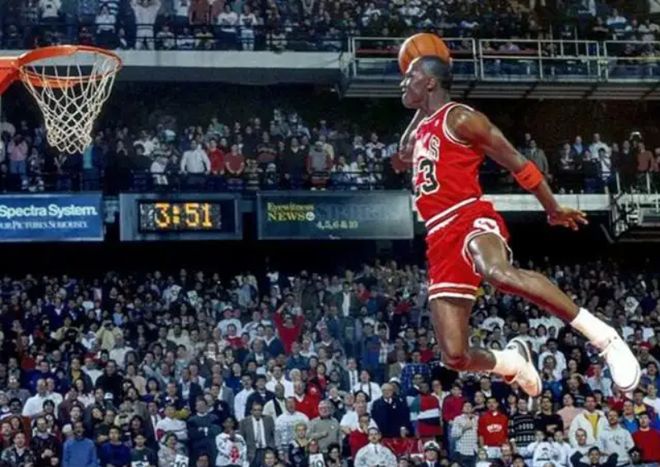 而乔丹身体素质的出色和罕见,只有看比赛才能直观的感受到。